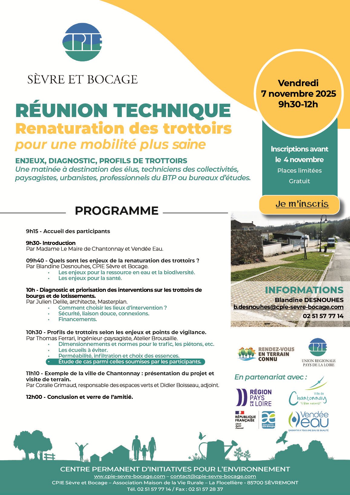 Réunion technique "Renaturation des trottoirs pour une mobilité plus saine" à Chantonnay. Une matinée à destination des élus, agents des collectivités, urbanistes, paysagistes, en présence de Julien Delile, architecte-urbaniste chez Masterplan et Thomas Ferrari - Ingénieur Paysagiste chez Atelier Brousaille.