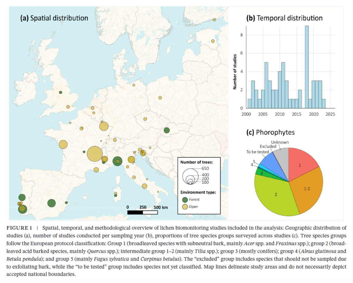 Pour ce faire, les relevés de terrain de 58 études européennes ayant appliqué le même protocole ont permis notamment de modéliser la réponse de 43 espèces de lichens aux polluants atmosphériques dominants et aux variables climatiques, confirmant ainsi la fiabilité des lichens comme bio-indicateurs.
