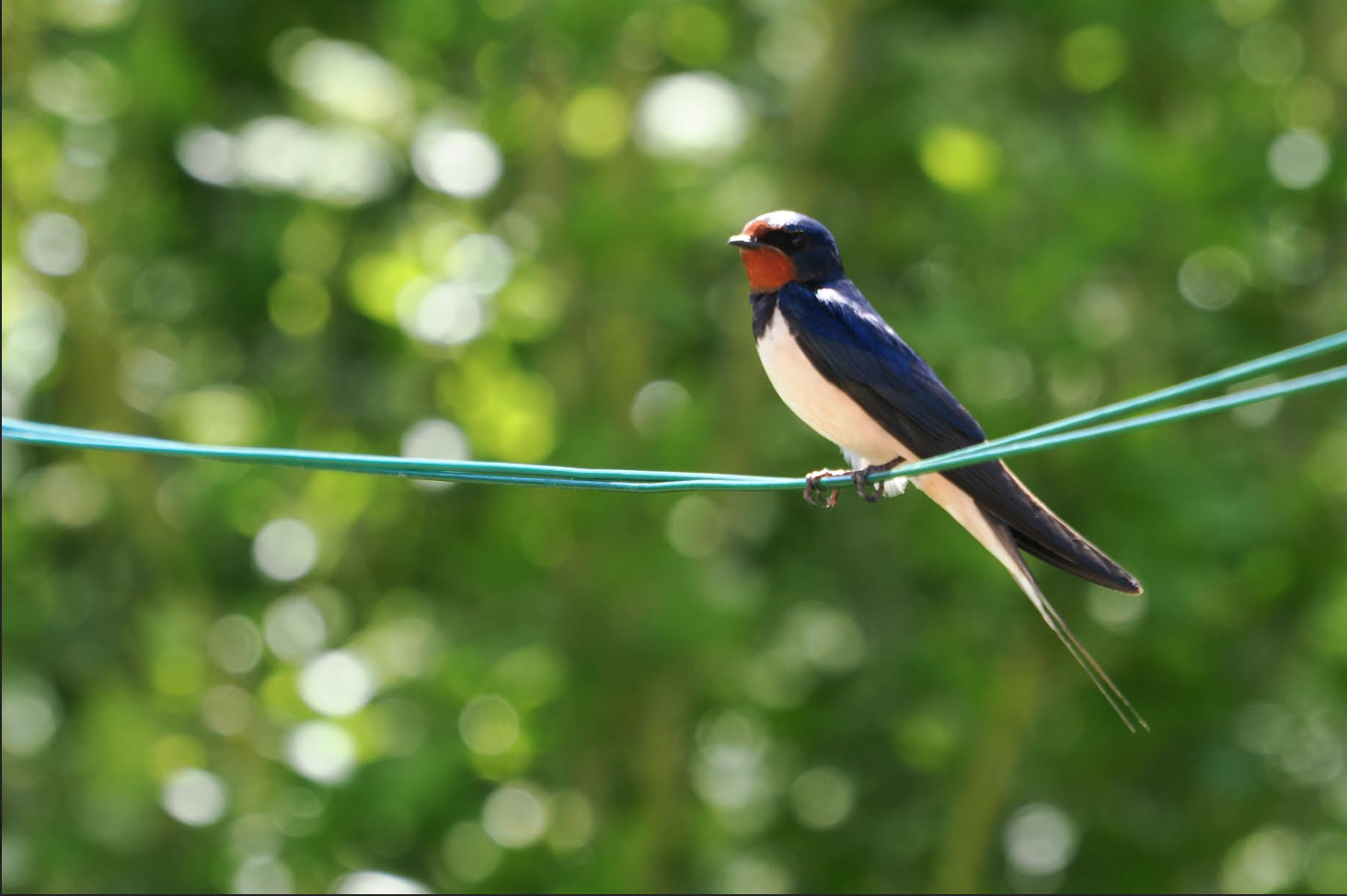 L’hirondelle rustique se reconnaît à sa silhouette élancée, sa longue queue en forme de fourche et sa gorge rouge brique. Elle affectionne la campagne et construit son nid à l’intérieur des bâtiments, comme les granges ou les étables. L’hirondelle de fenêtre, présente un plumage noir et blanc et installe son nid en boule sous les avancées de toits, sur les façades des habitations.